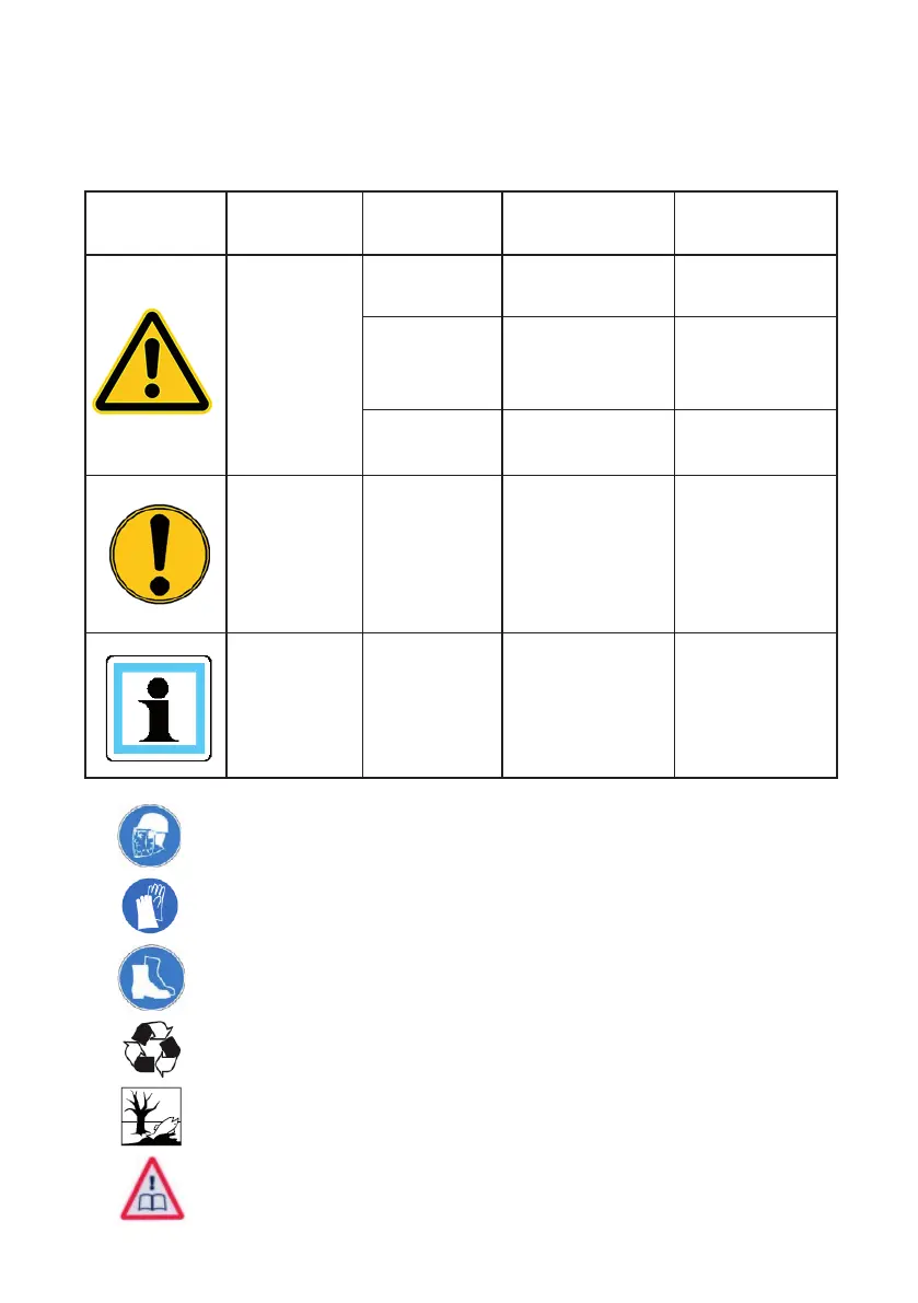 provides an overview of the assignment of symbols (pictograms) and signal words to the
