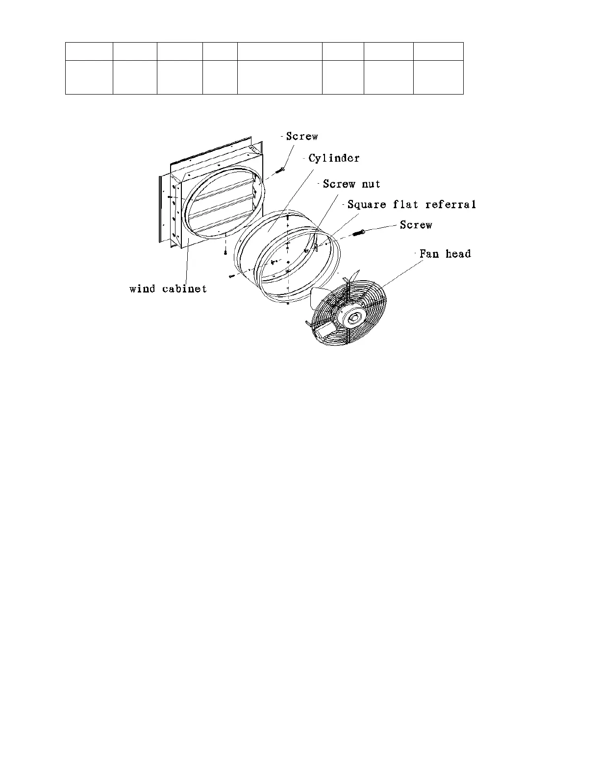 1. Use screws, nuts, and flat referrals to assemble the fan head to the shutter assembly and then firmly