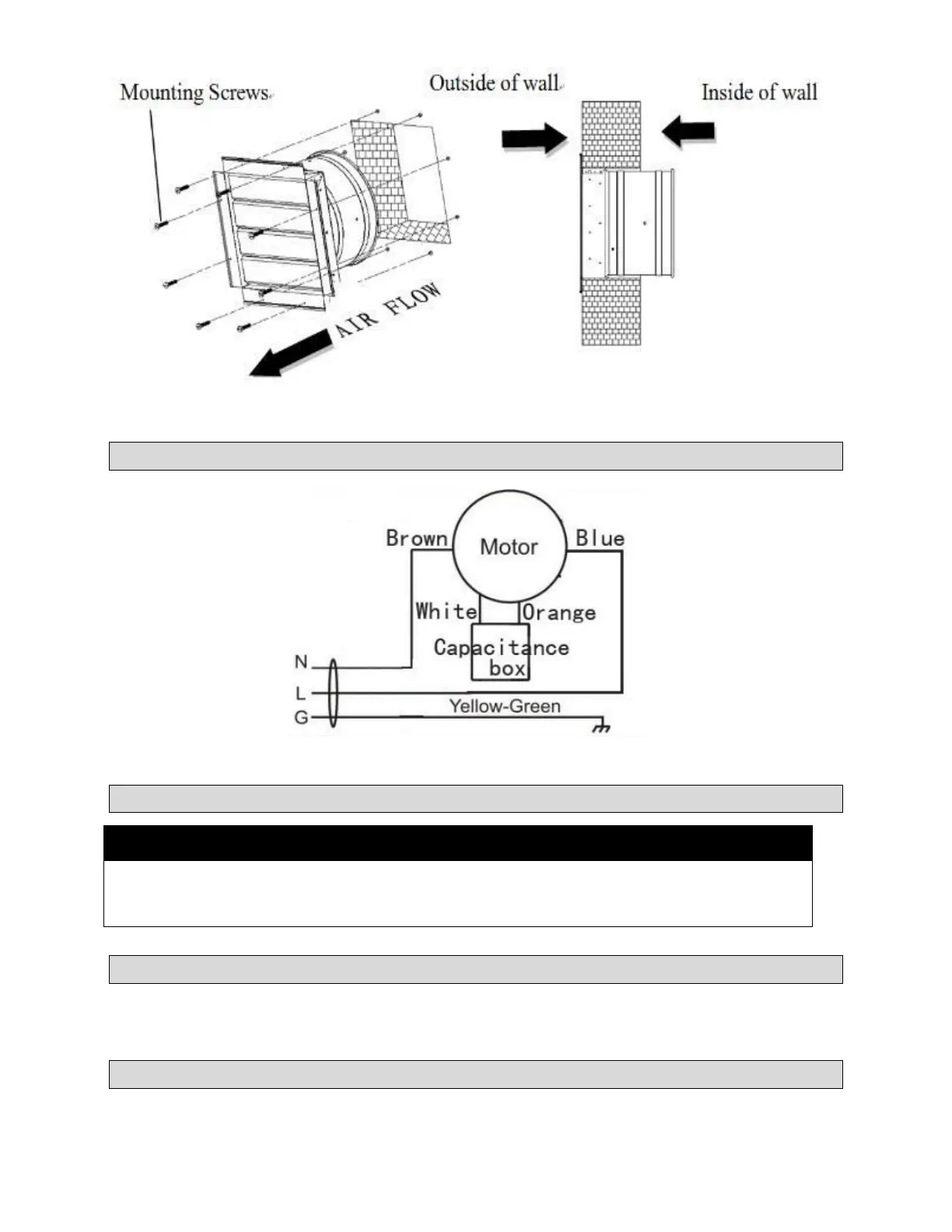 Note: Be sure when the fan is mounted that the shutter louvers open upward and close downward.