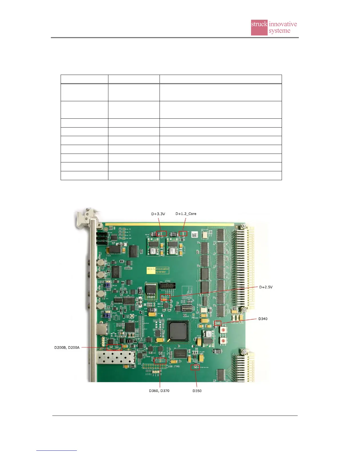 9 red surface mount LEDs are on the SIS3153 to visualize part of the board status.