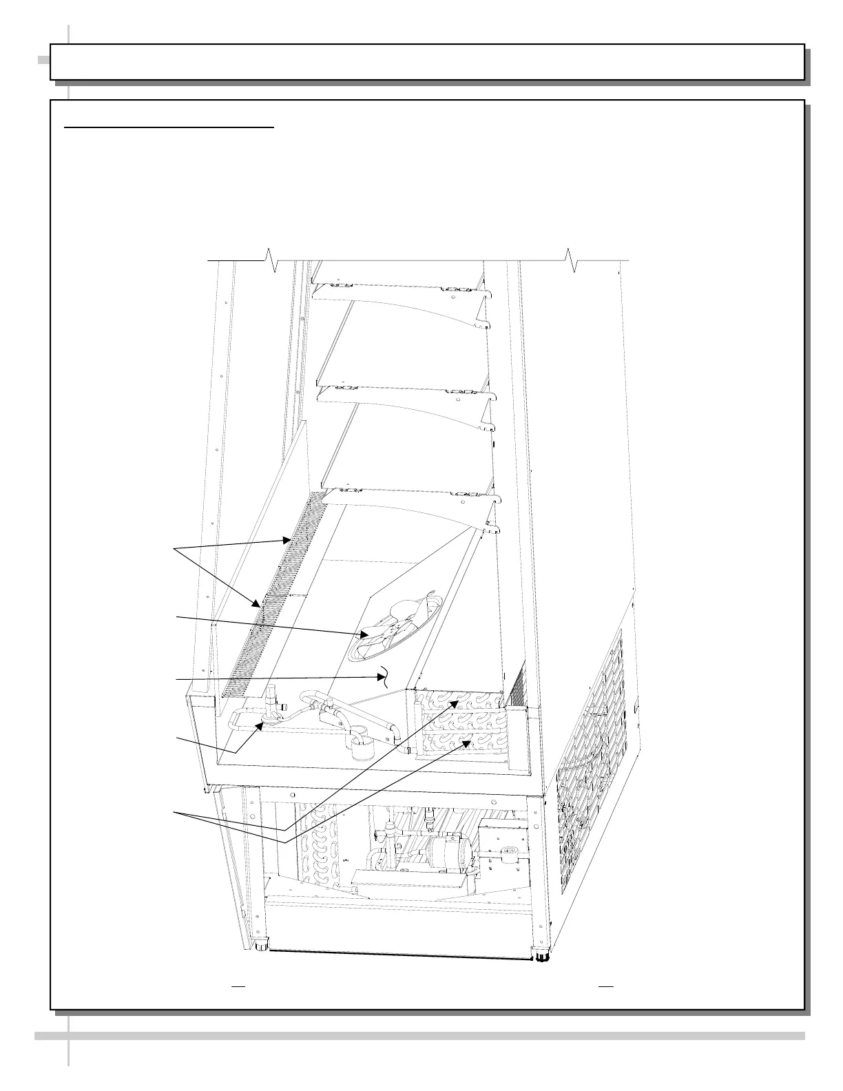 Caution! Turn off main power before accessing the evaporator coil / deck pan area. Rotating blades can