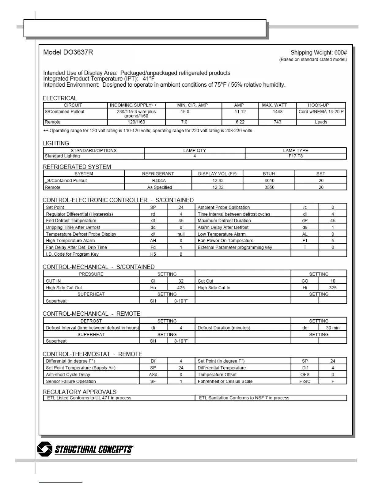 Structural Concepts DO3623R - Technical Information Sheet - Model Do3637 R