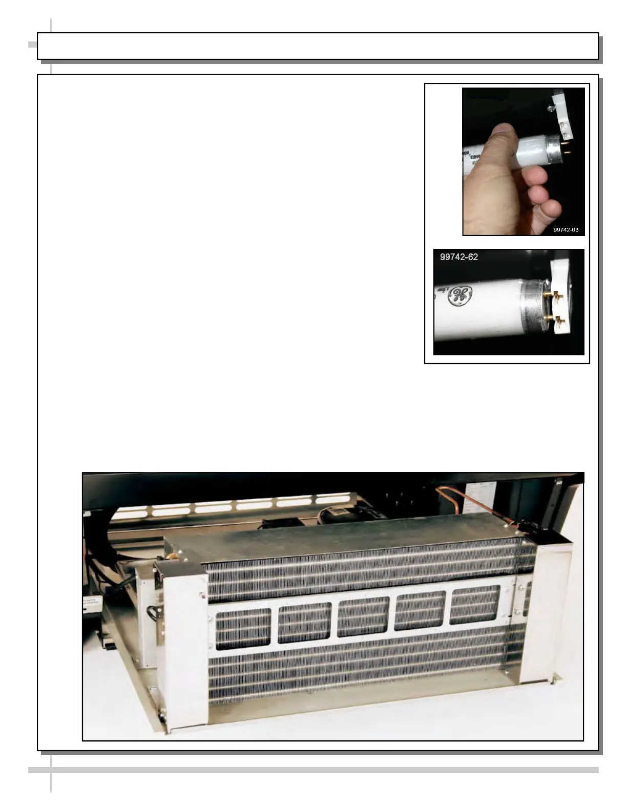 Clean sweep Condensing Coil (photo below) is accessible by removing rear grille.