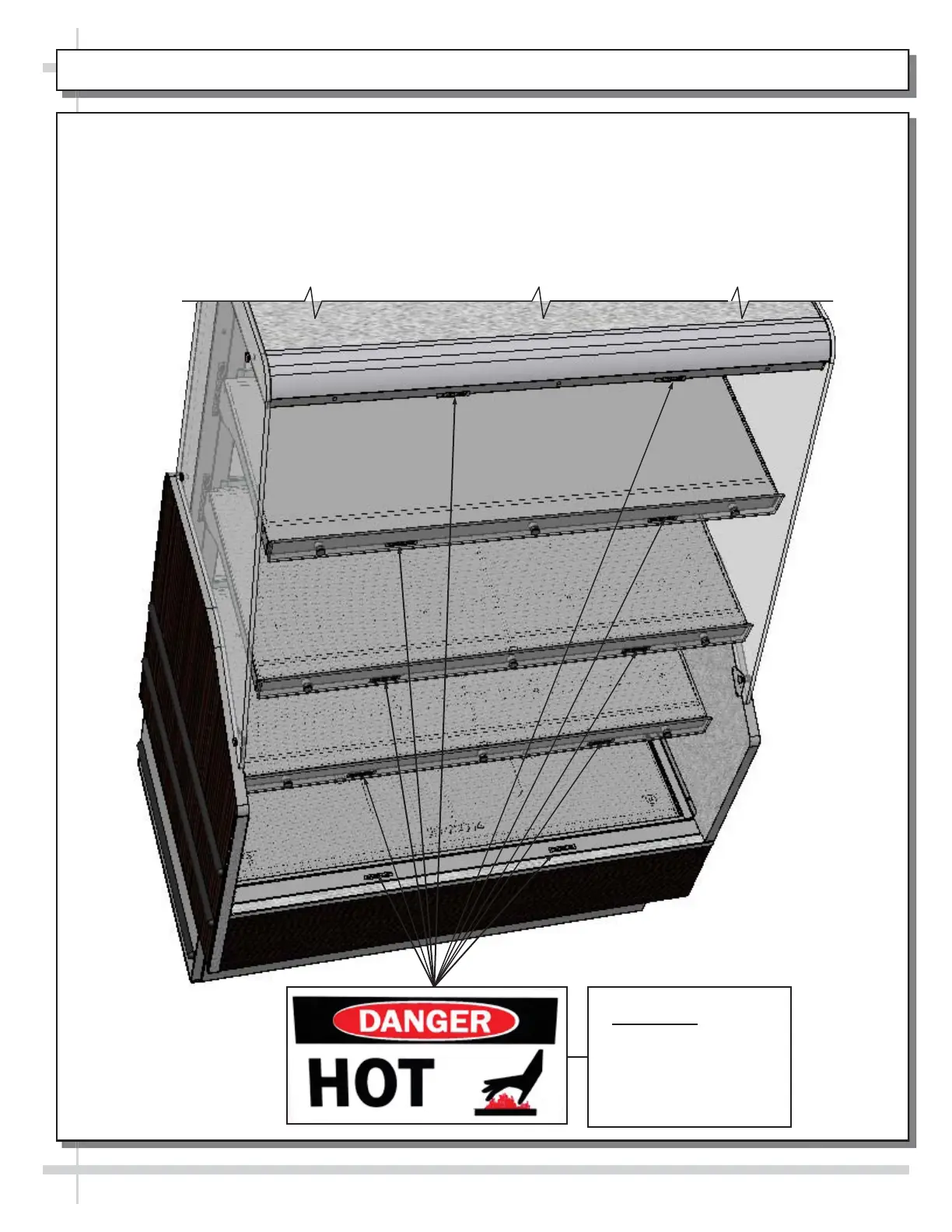 x Illustration below shows proper placement of “Danger-Hot” labels.