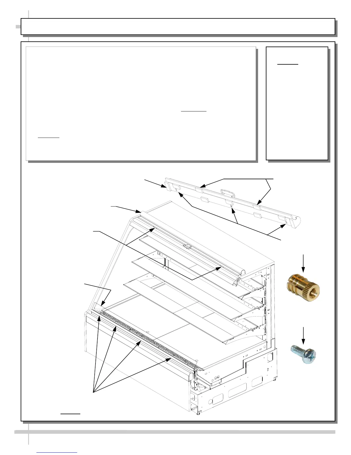 object to prevent top board damage. Attach Night Air Curtain with #10-32 screws.