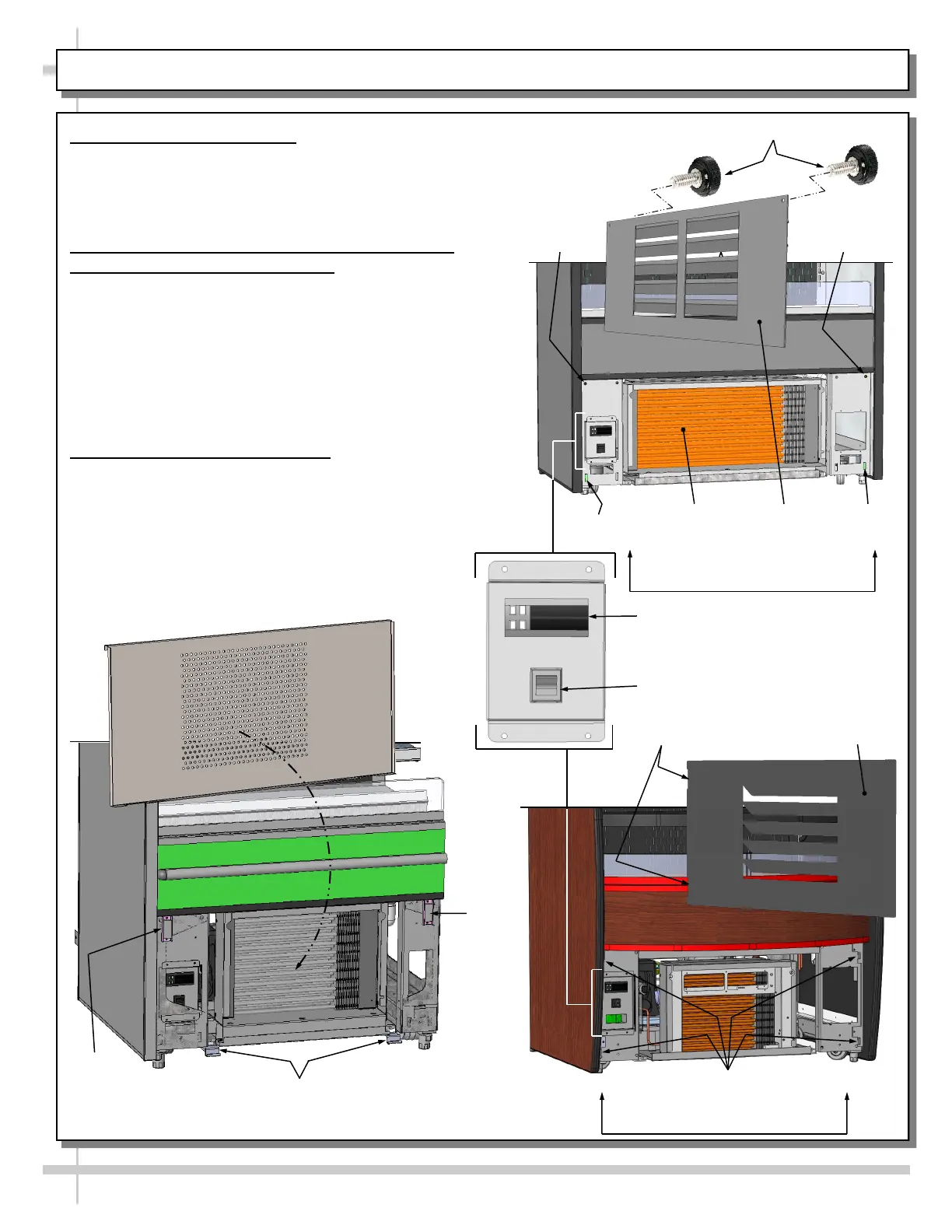FRONT GRILLE REMOVAL / CONDENSER PACKAGE / OVERFLOW PAN / MAIN POWER SWITCH