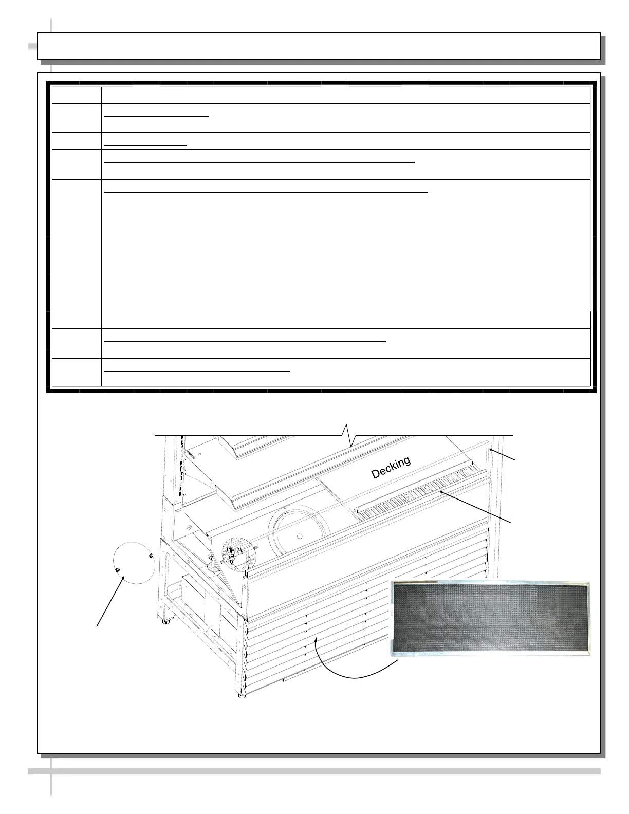 Monthly Air Return Grille and Fan Shroud Area: See Illustration below. 1) Turn off power. 2) Remove decks