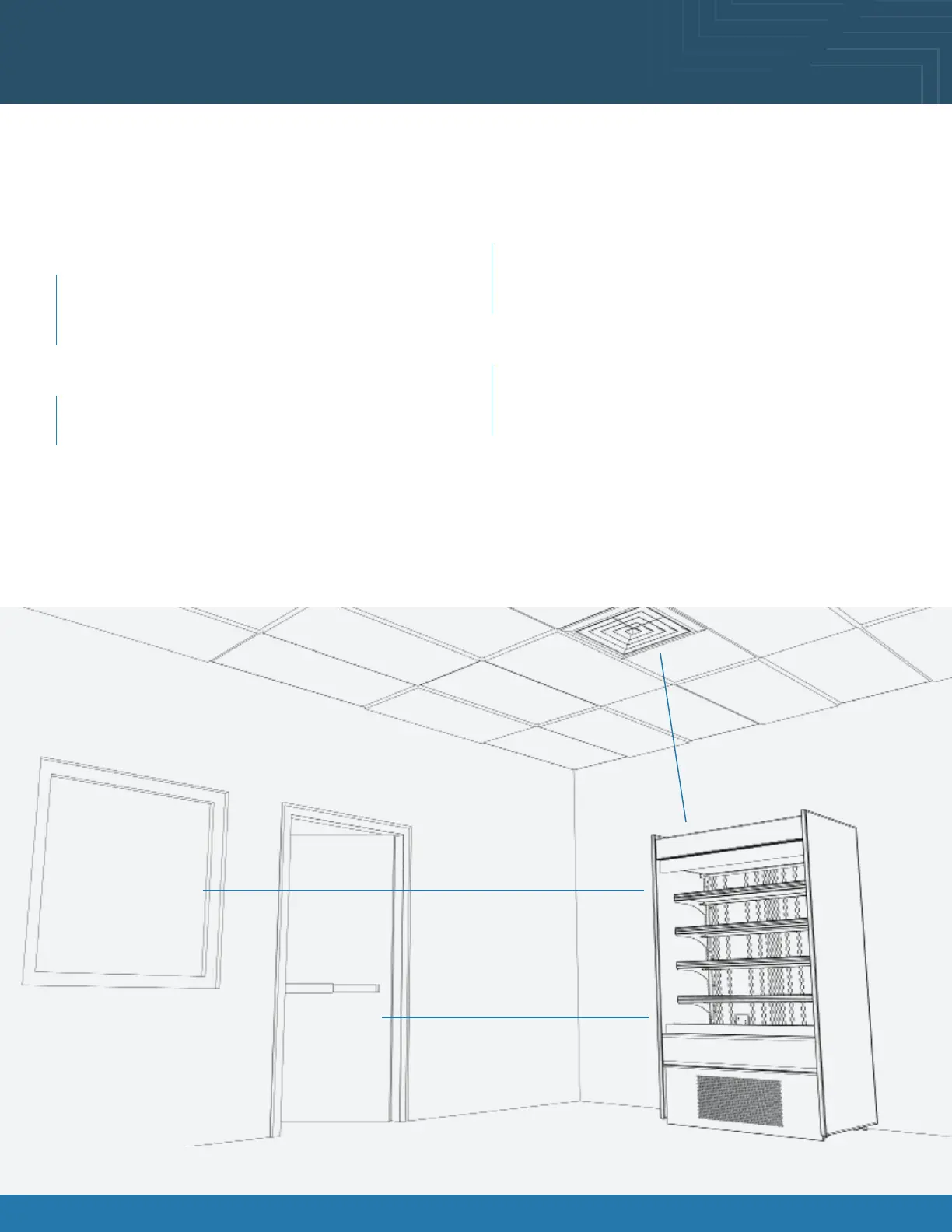 Consider where the display case will be positioned relative to walls, ceilings, HVAC vents, windows, and other equipment
