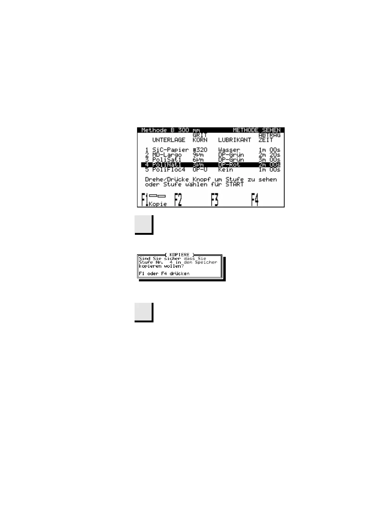 Wählen Sie Methode und Präparationsstufe aus, die kopiert