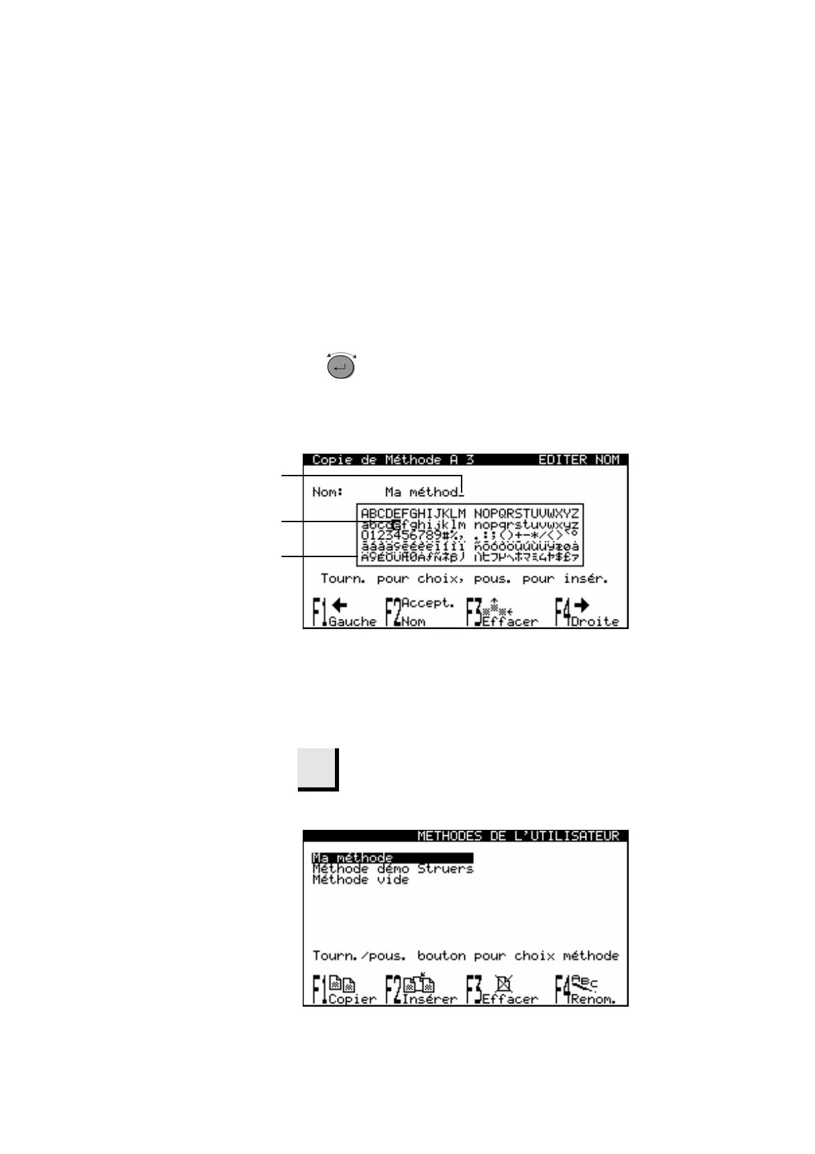 GAUCHE ou F4: DROITE. Tourner le bouton pour se déplacer au