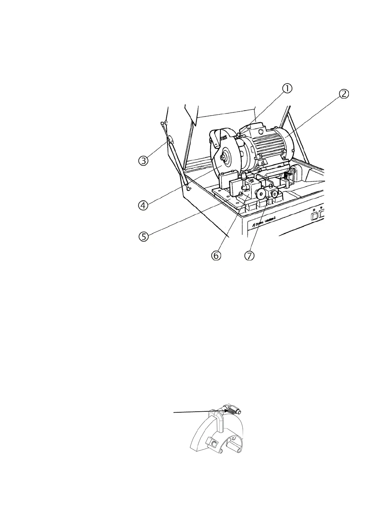 The cooling valve lever is mounted behind the guard for the cut-off