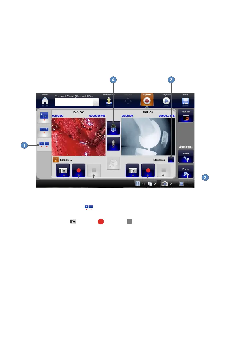 2� Press the CAPTURE , RECORD , and STOP buttons under the respective preview