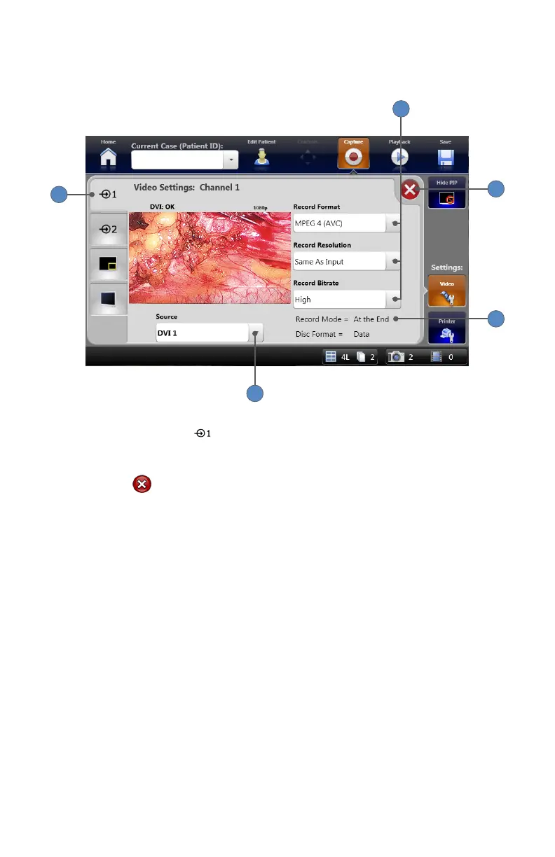 4� Recording mode and disc format settings for Channel 1 are displayed here� These settings