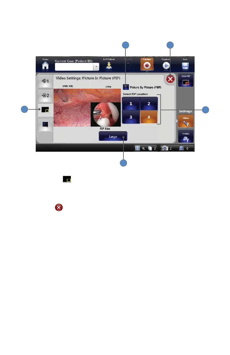 1� Pressing the PIP tab displays to the “Video Settings: Picture in Picture (PIP)” screen�