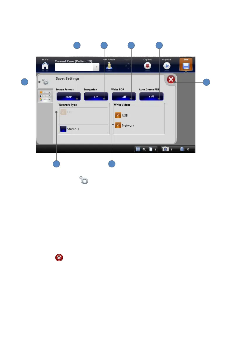 3� Pressing the ENCRYPTION button enables encryption of patient information when saving
