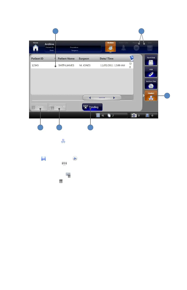 2� The Archive Patient List displays the number of images, videos or PDFs saved with a
