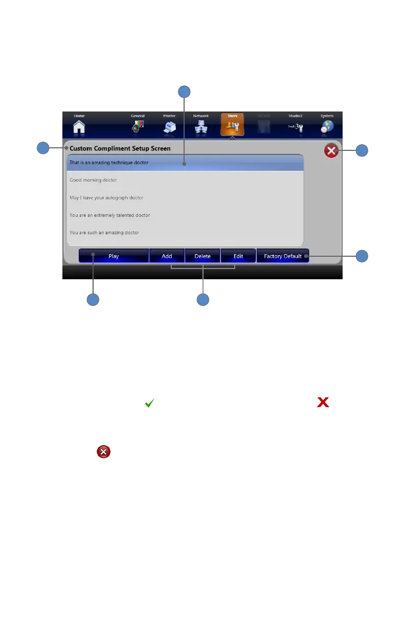 5� Pressing the FACTORY DEFAULT button resets the custom compliments list to the factory