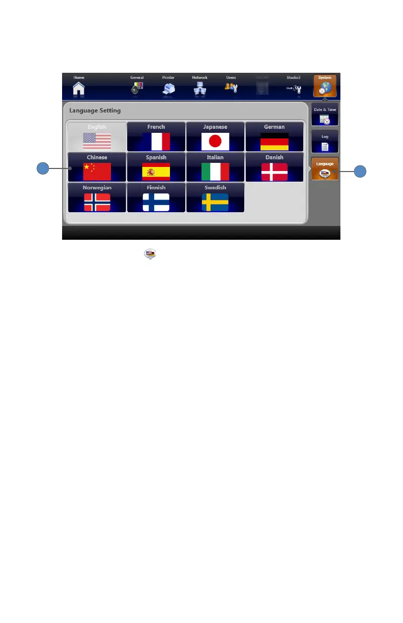 tab in the System screen opens the “Language Setting”