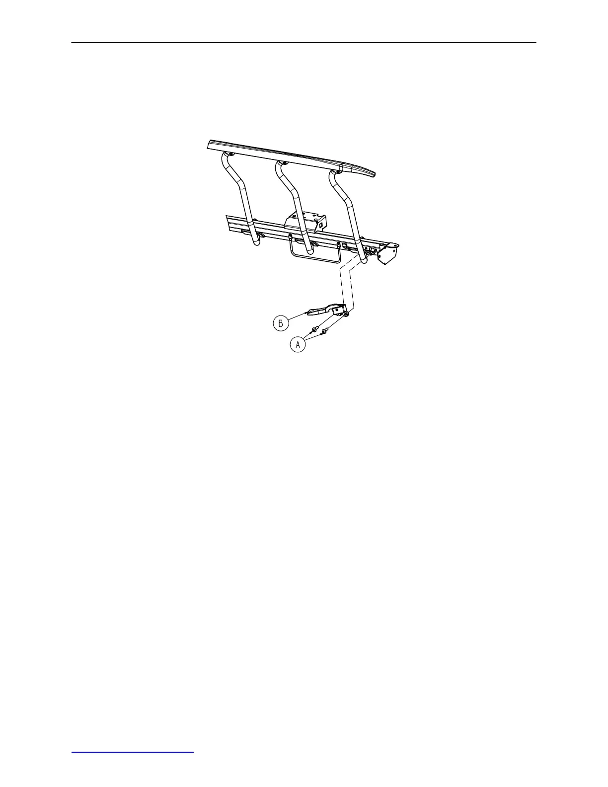 2. Remove the two bolts (A) holding the siderail latch (B) to the litter frame and discard the bolts and latch.