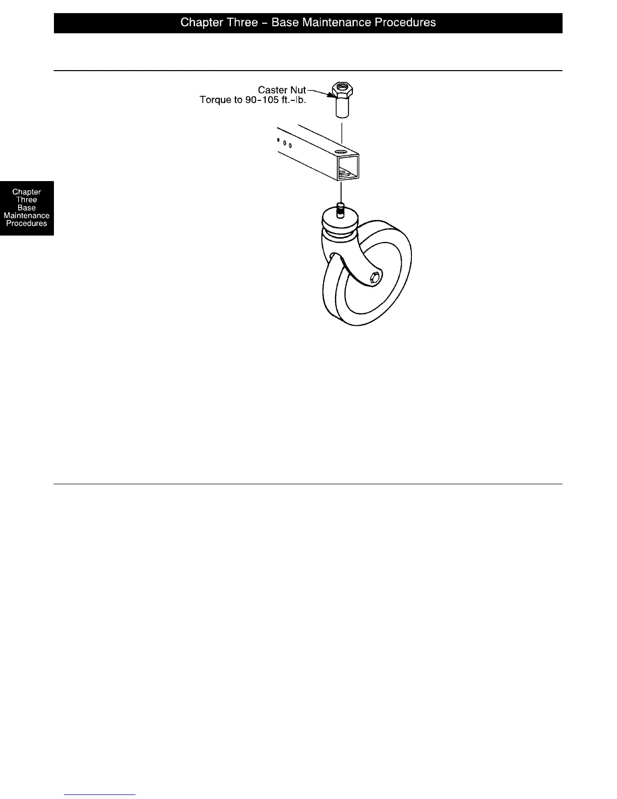 2. Install the replacement caster and caster nut. Tighten the caster nut to 90–105 ft.–lb. with a torque wrench.