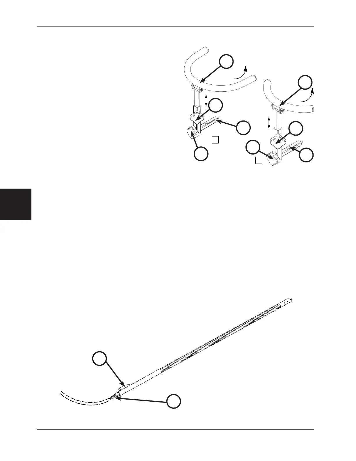 Nota: O descanso em forma de “U” (D) pode ser girado para cima e afastado do doente quando o descanso para