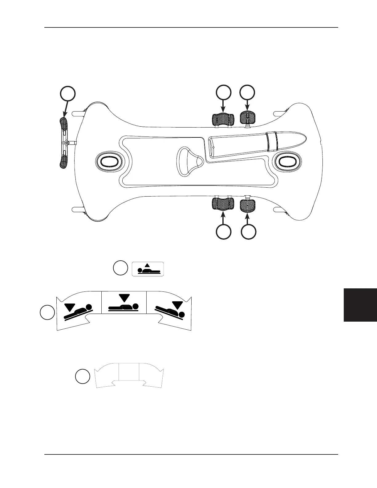 Figuur 1: De bedieningen van het onderstuk van de brancard – zijbediening