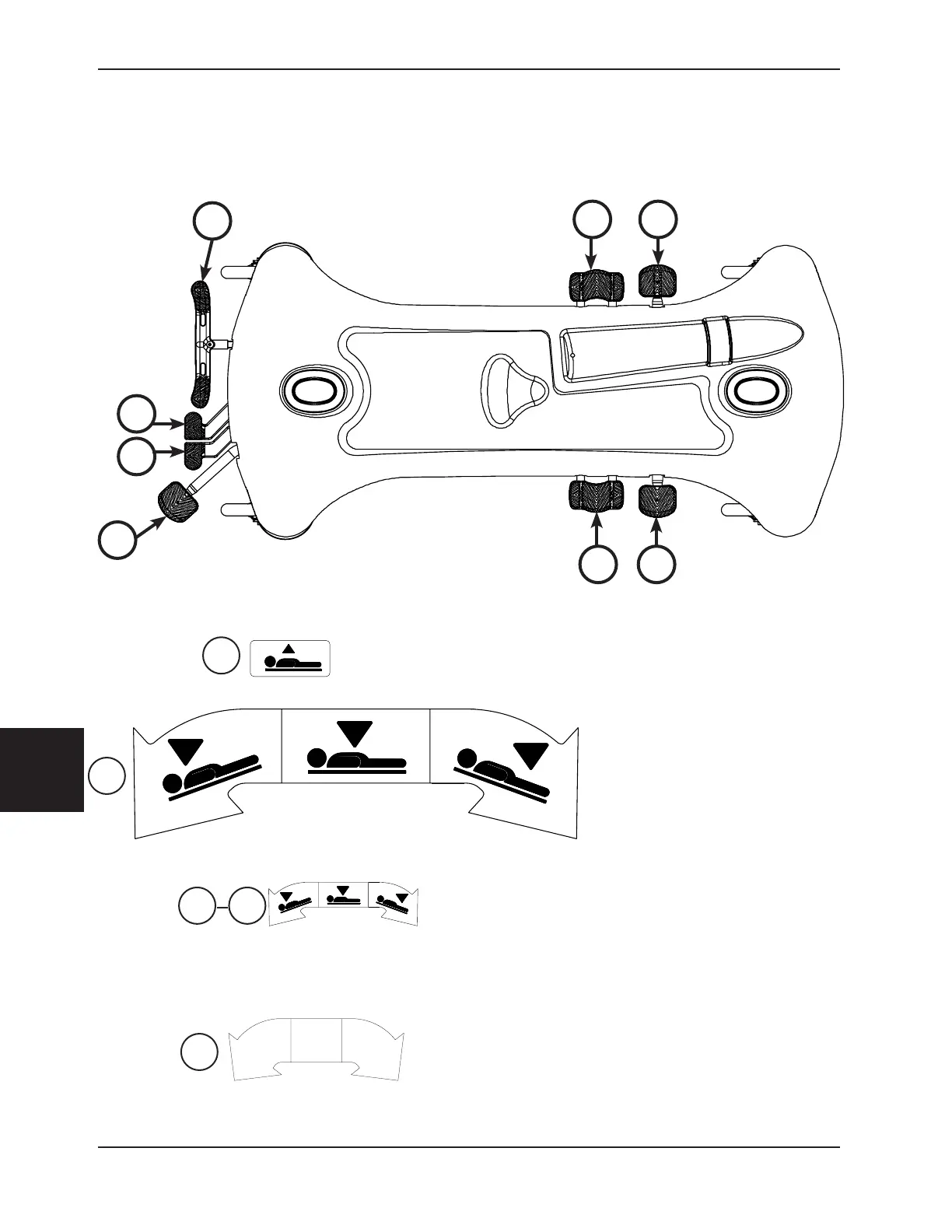 Figuur 2: Bedieningen van het onderstuk van de brancard – bedieningen aan 3 kanten