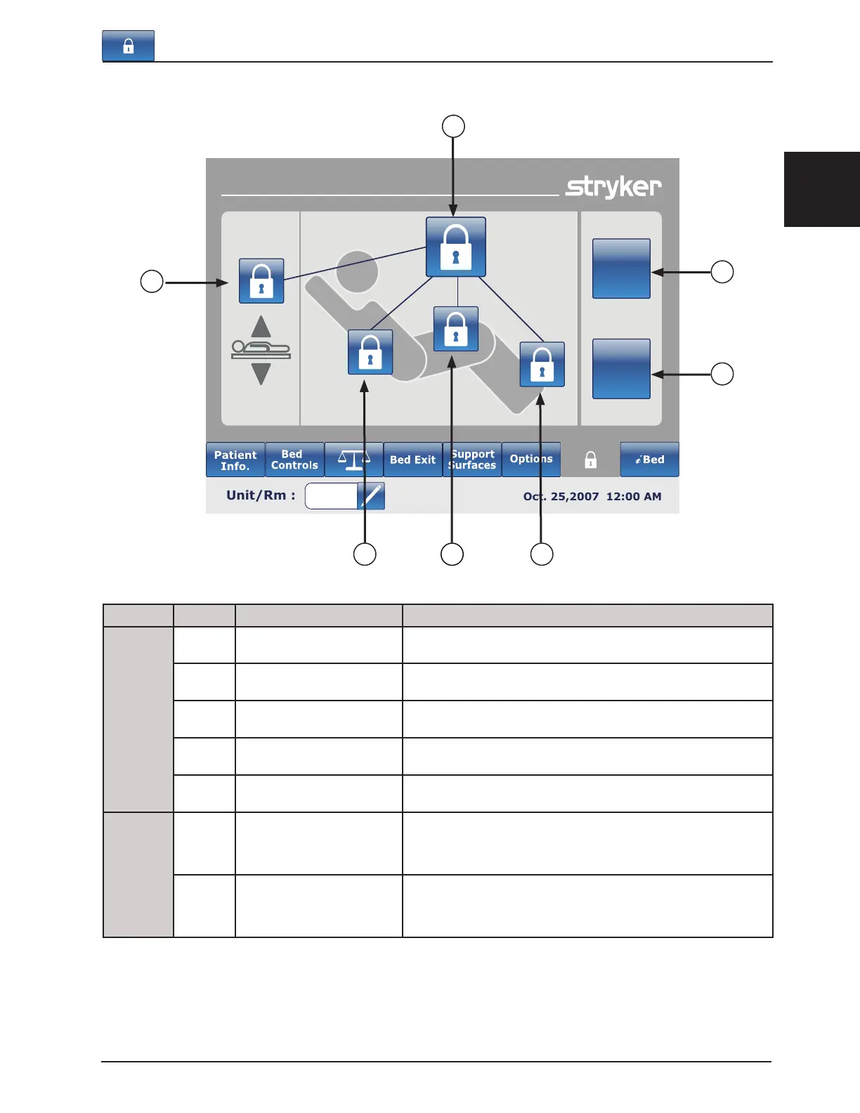 Gatch-Sperre Diese Taste drücken, um die Sperre für den Gatch-Bereich zu