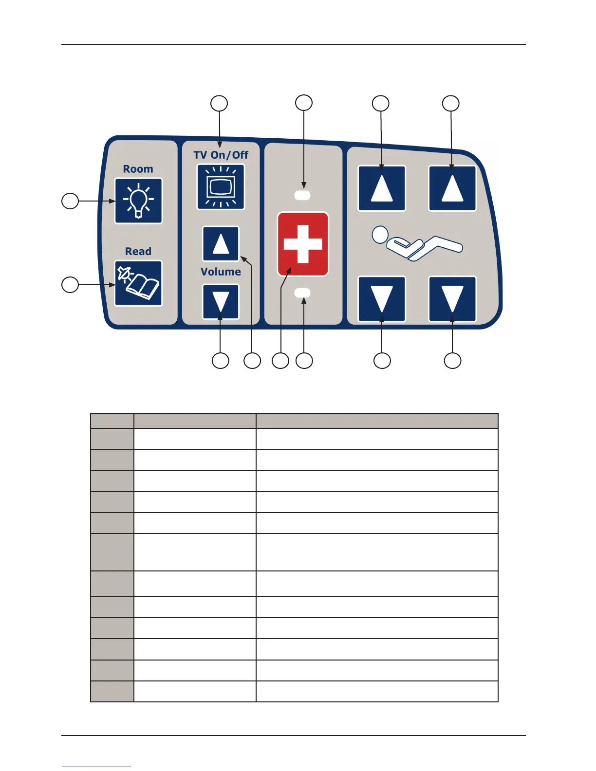 Bed Overhead Light Press to turn the bed overhead light On/Off.
