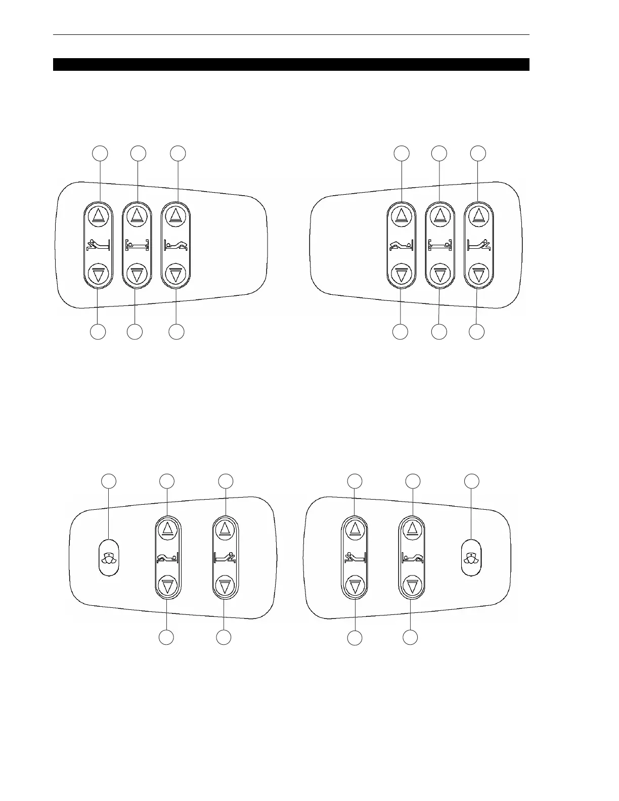 A: Push to raise Fowler C: Push to raise bed E: Push to raise Knee Gatch