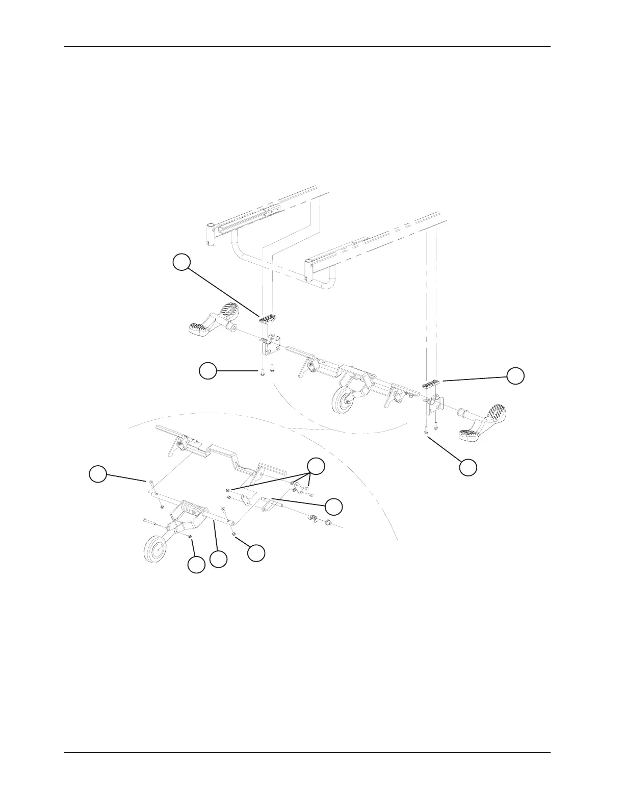 (F, Figure 4.4 B, (without fifth wheel option) pg. 62) on the side of the defective pedal and lay the support down.