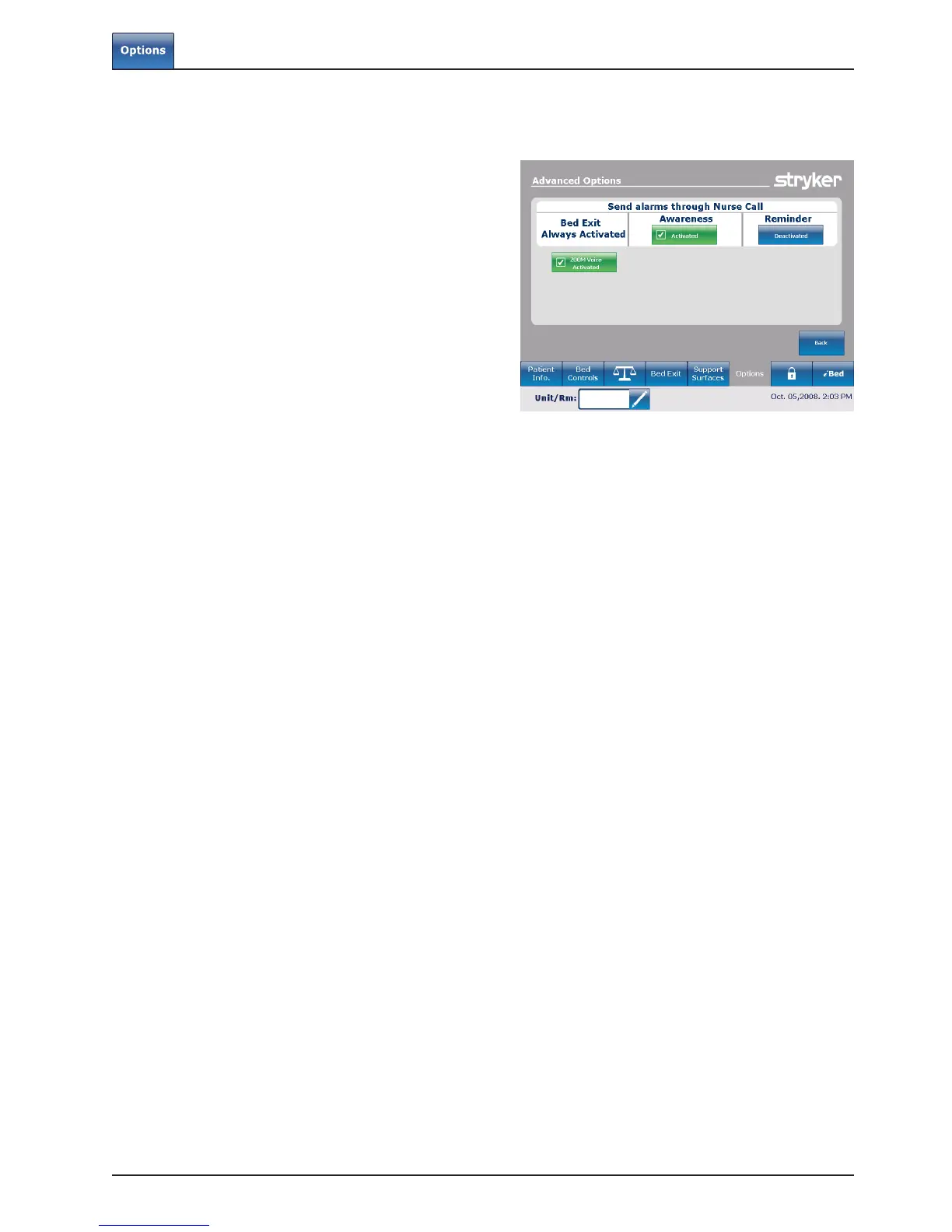 alarms will be sent through the bed Nurse Call signal.