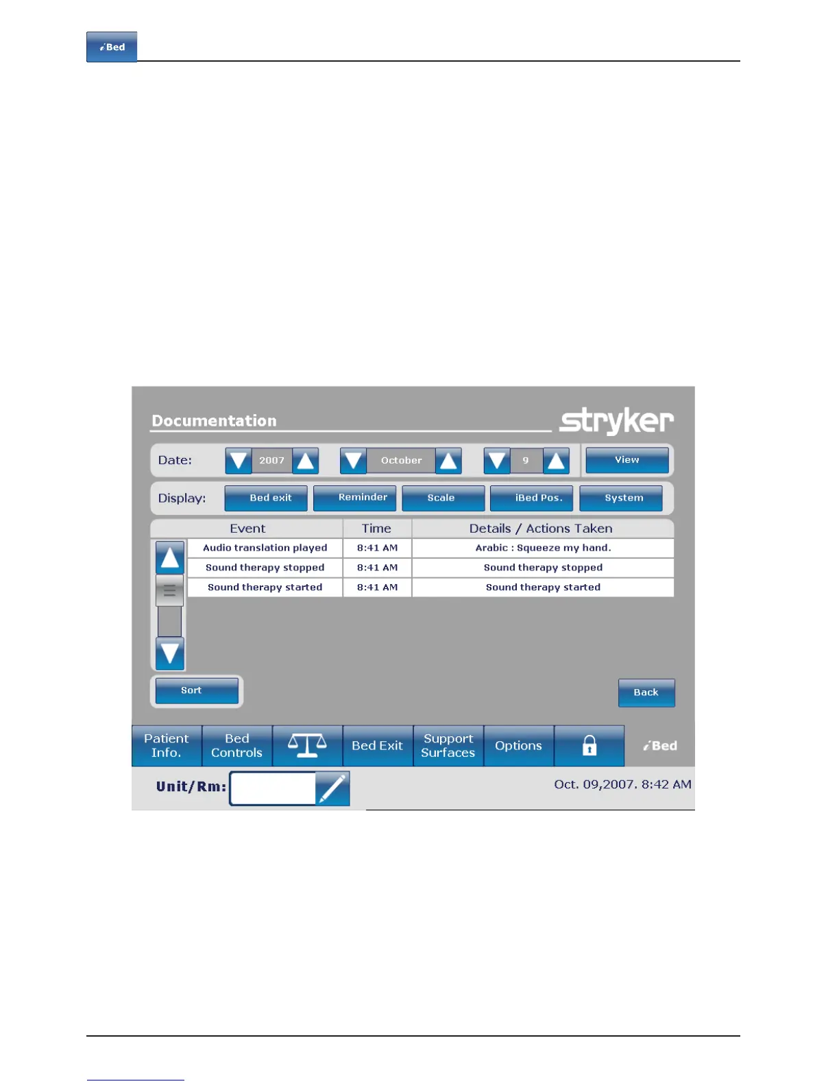 When the “Documentation” button is pressed on the iBed screen, Figure 10.15 will be displayed.