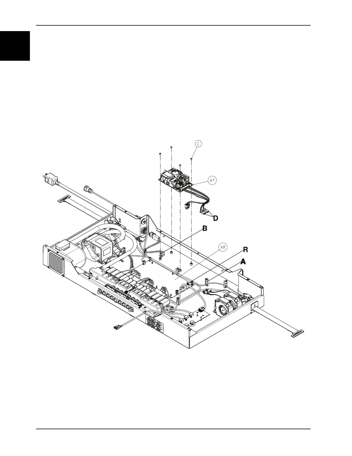 8. Using a T10 Torx driver, remove the four screws (C) that secure the power supply (AY) to the foot box (Figure 1-20