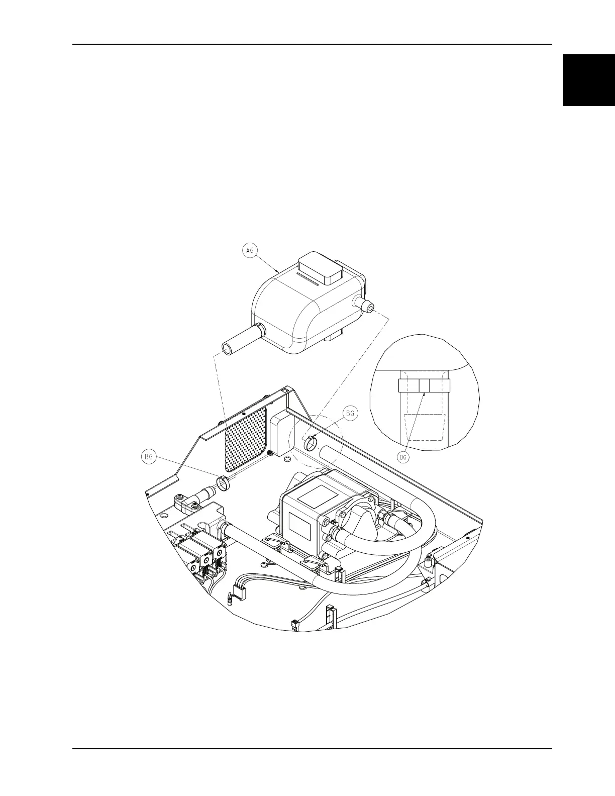 2. Using diagonal pliers, cut the cable ties (BG) from the inlet and outlet hoses of the resonator and discard the cable