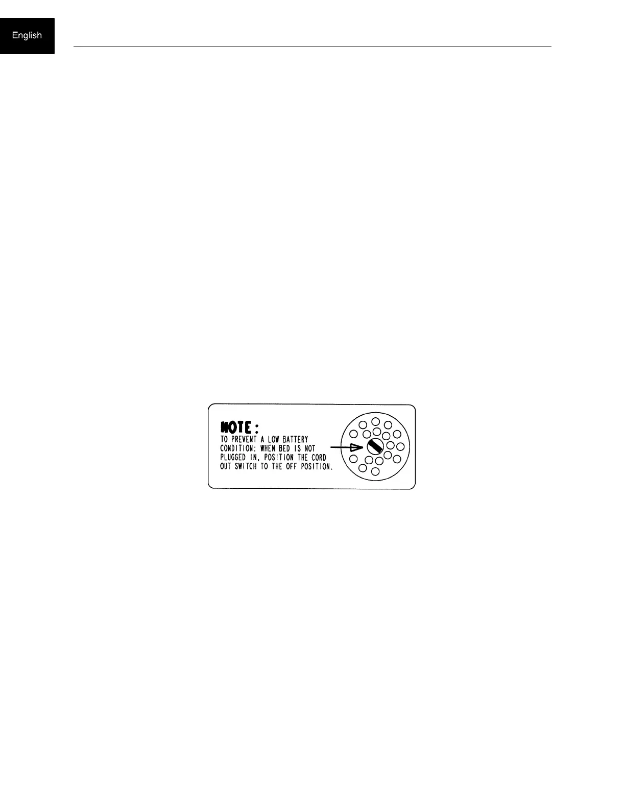 end of the bed to the off position. The switch is identified by the label shown below. If the switch is not posi-