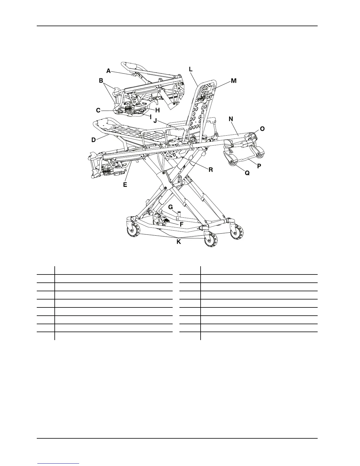 A Footrest release handle J Siderail release handle