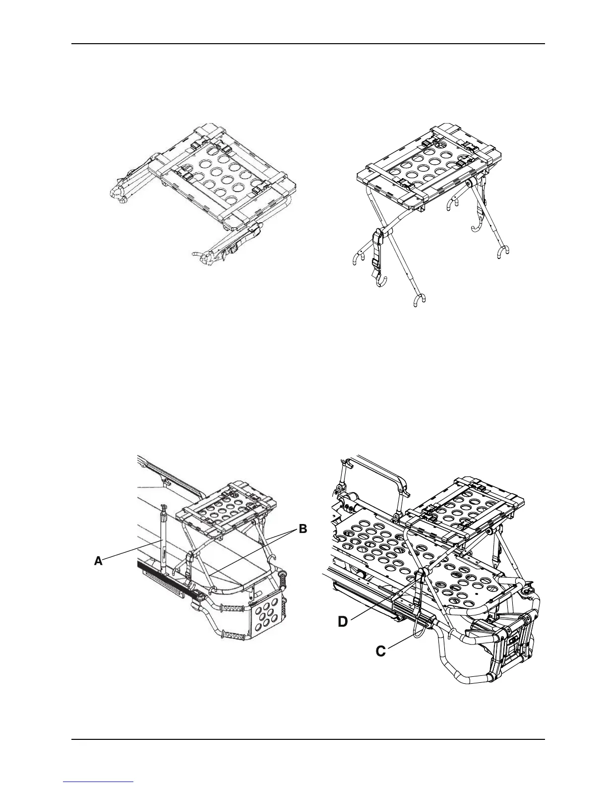 5. Position the inside legs (B) of the defibrillator platform toward the head end of the product (Figure 38 on page 51).