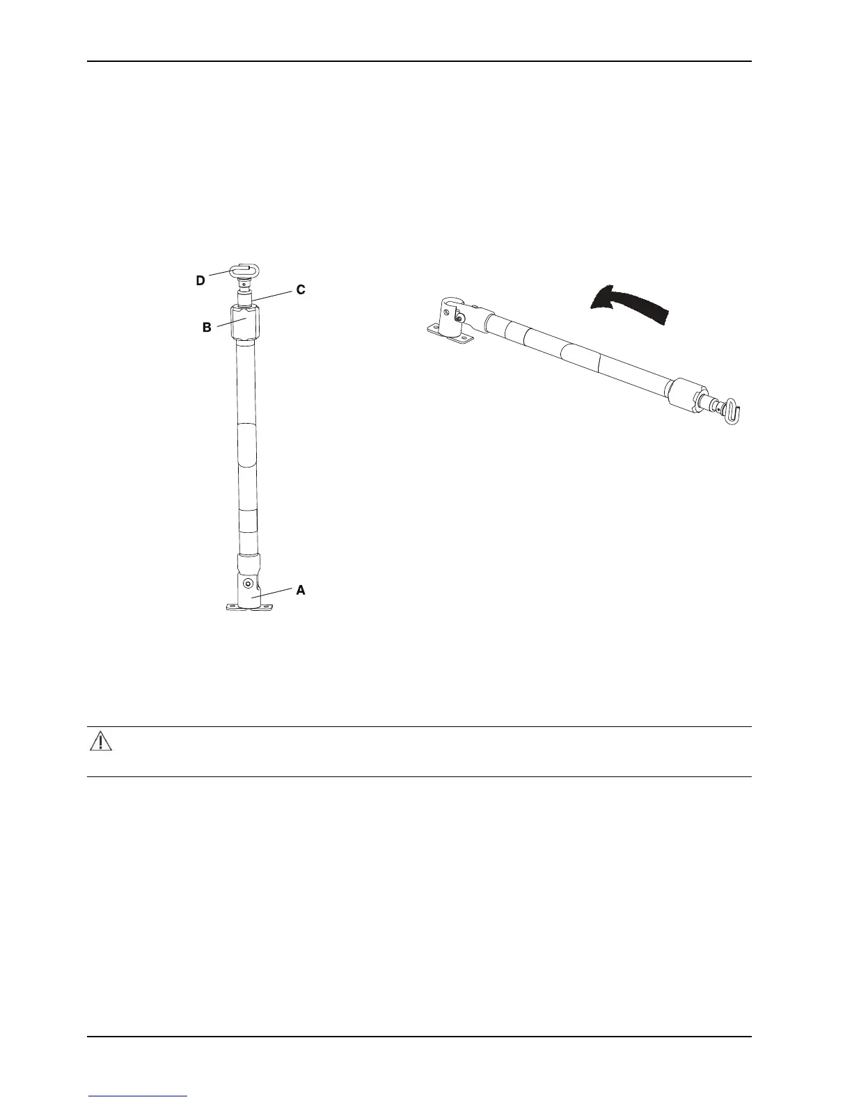 2. To raise the height of the pole, turn the lock actuator (B) counterclockwise and pull up on the telescoping portion (C)