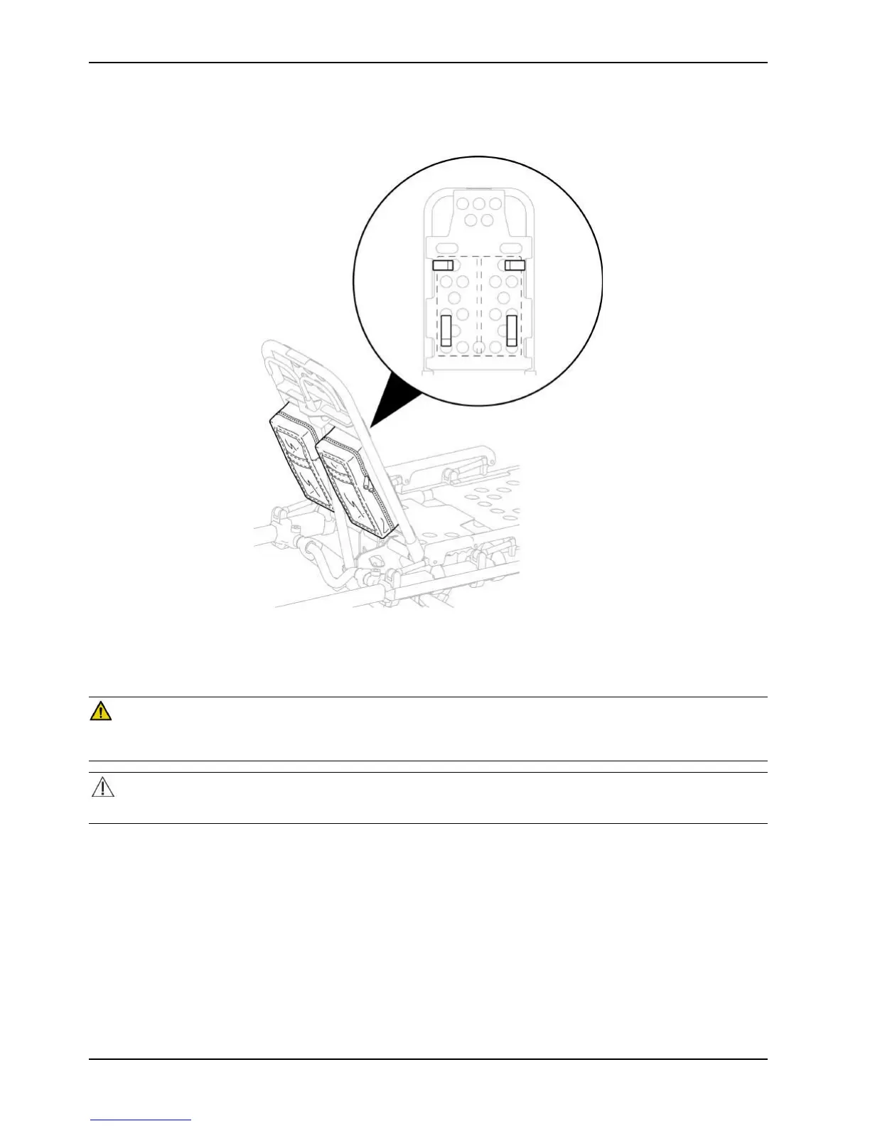 2. Buckle the restraint straps (B) around the outer rails of the retractable head section.