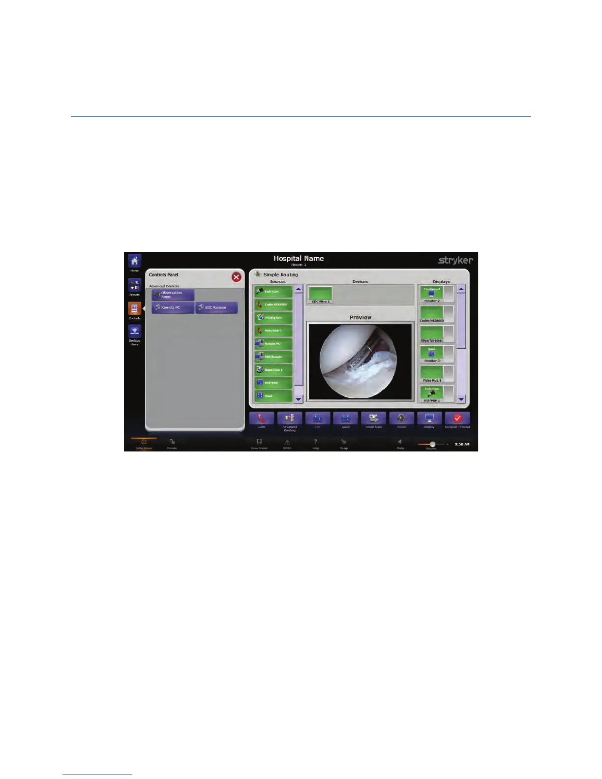Display, PIP/PBP, Quad View, Room Camera, and the Surgical Timeout functions.
