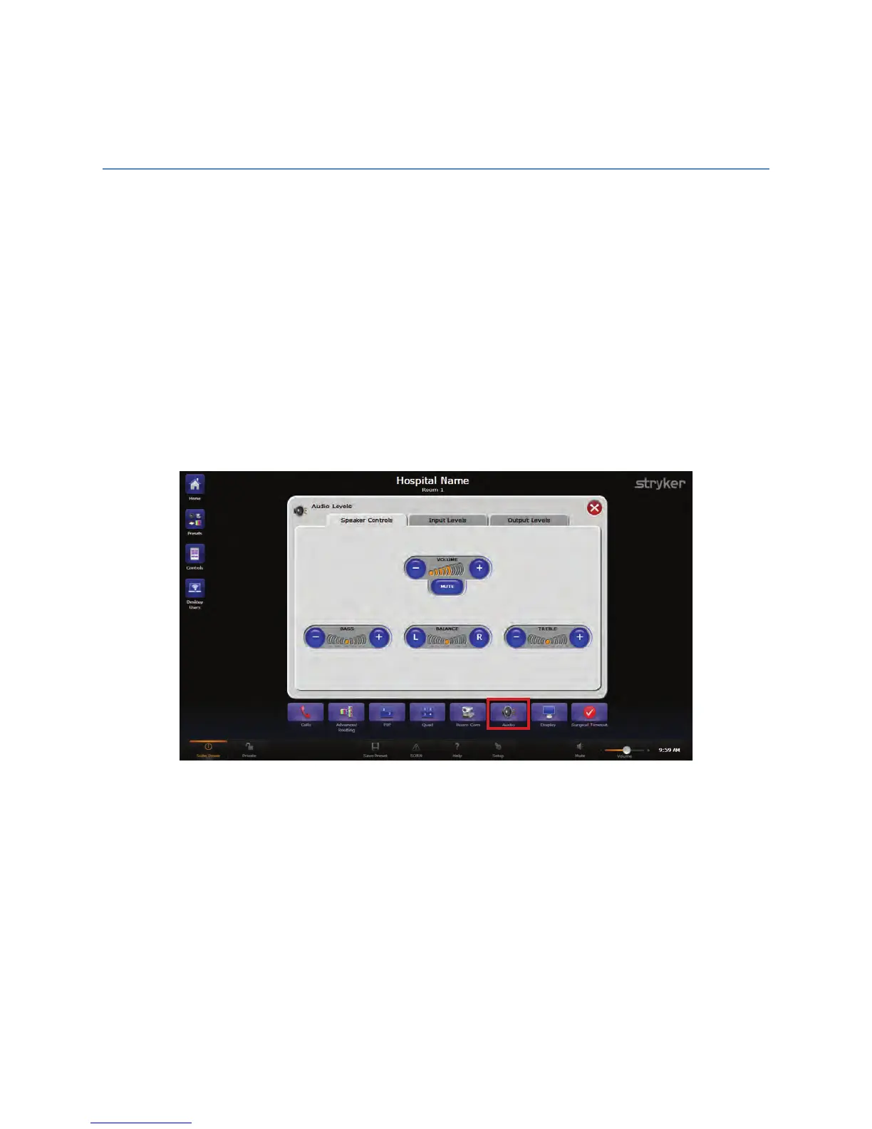 The Speaker Controls tab on the Audio Levels screen provides the ability to control the