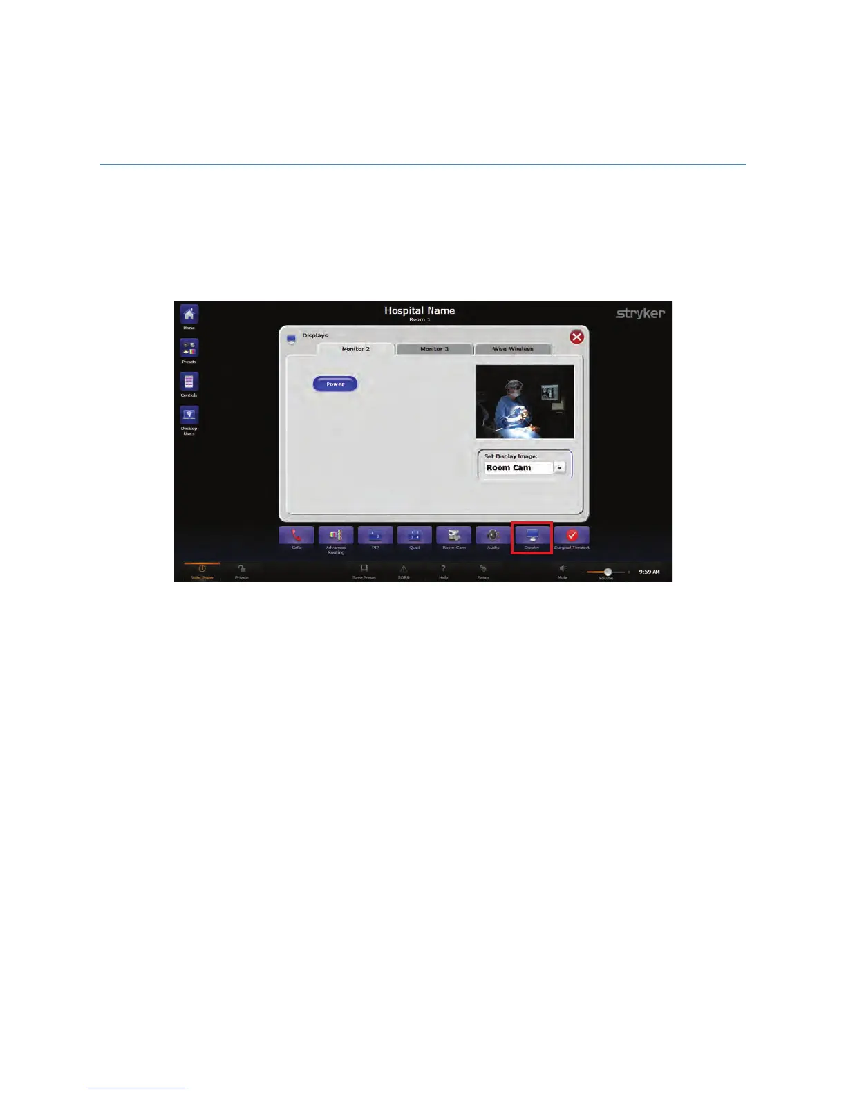 Displays screen represents a display in the OR. From each tab you can turn on or off the