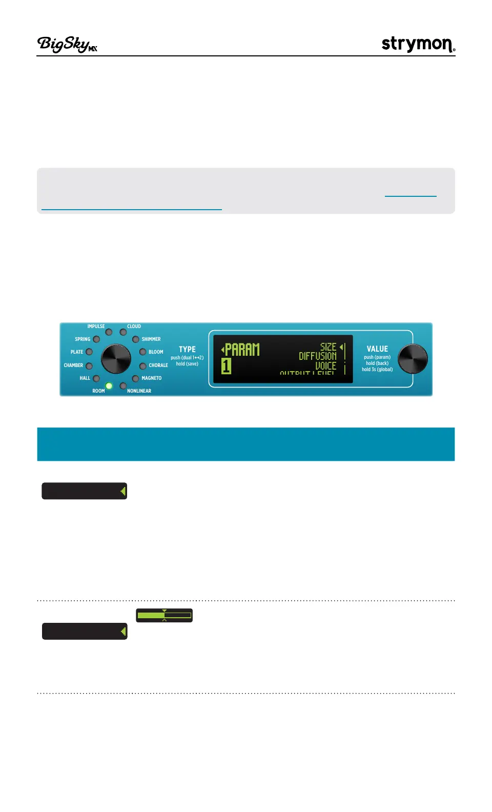 NOTE: If the current preset includes dual reverbs, push the TYPE encoder to