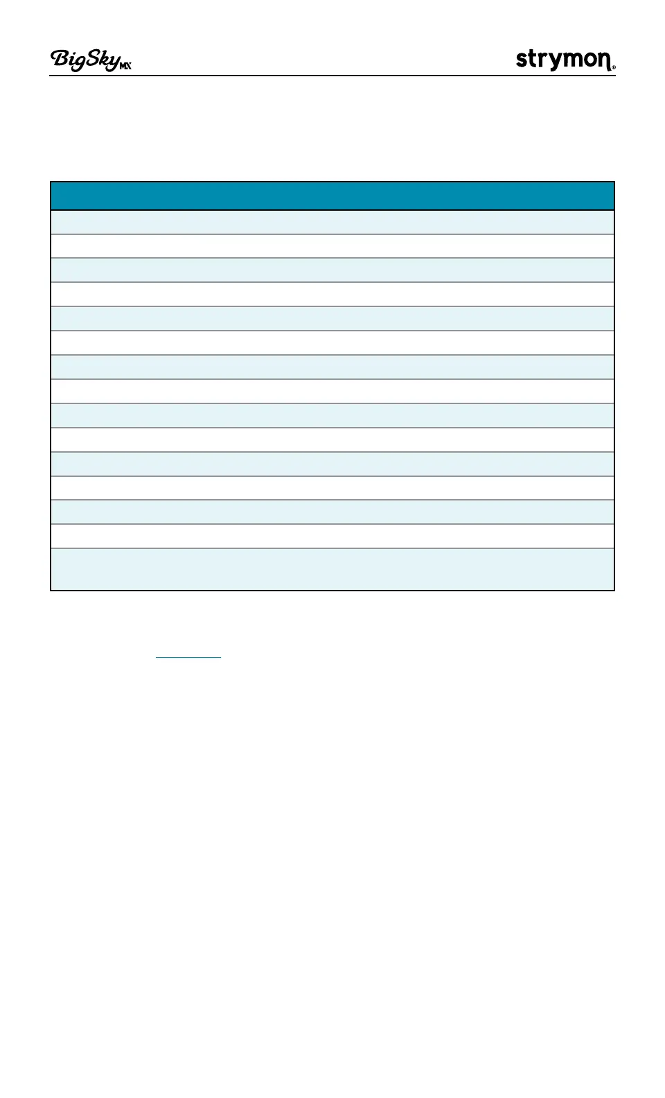 Strymon Big Sky MX - Factory Default Global Settings