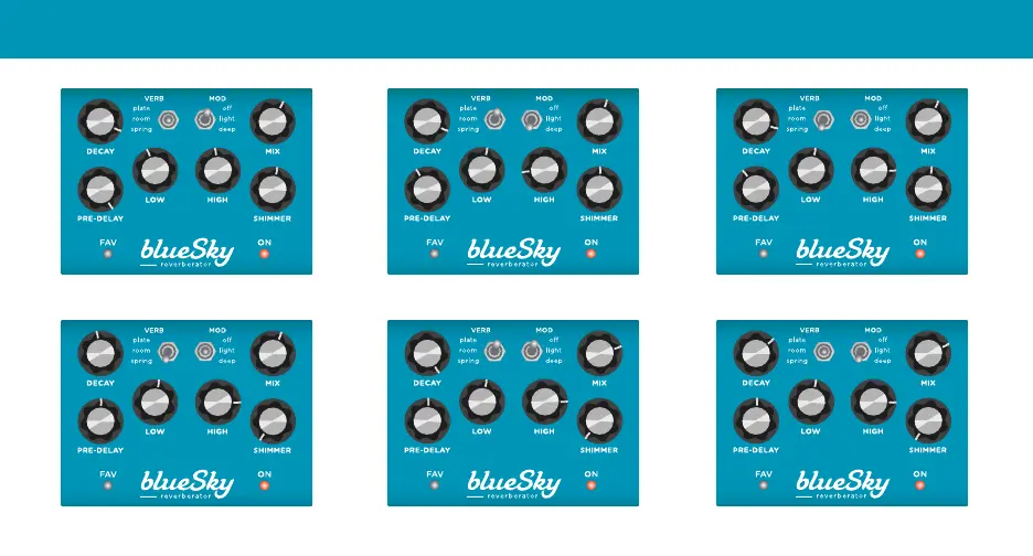 Strymon blueSky - Front Panel Controls: MOD, MIX, HIGH, SHIMMER