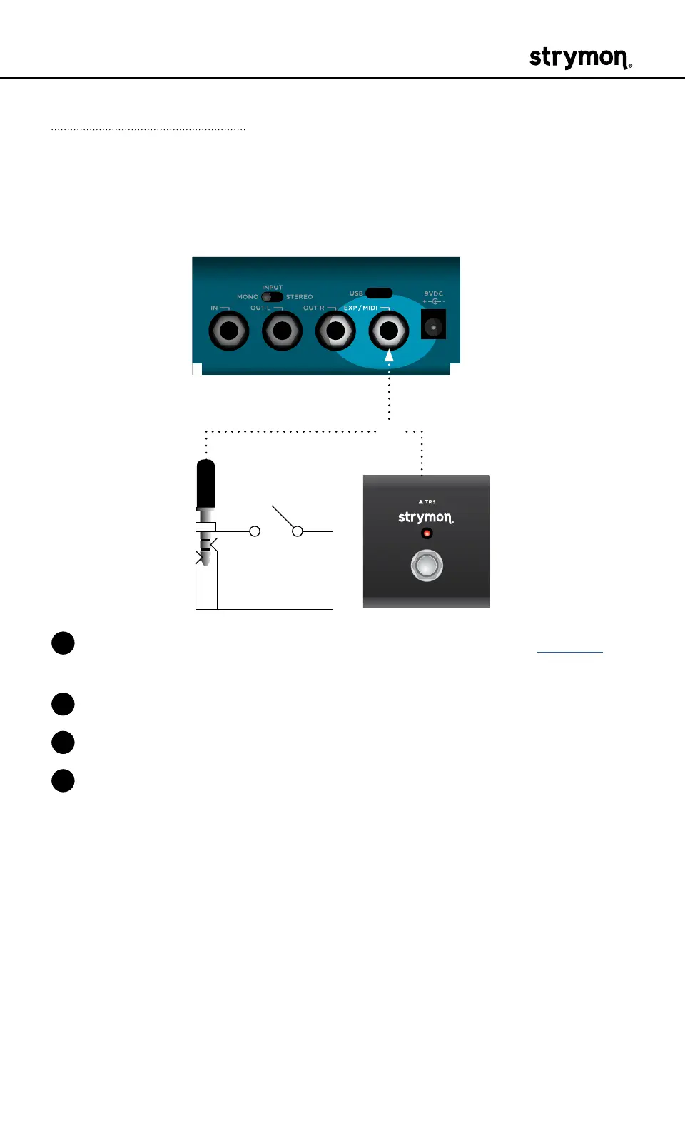 2 Connect an external switch with a TRS cable to the EXP/MIDI jack�