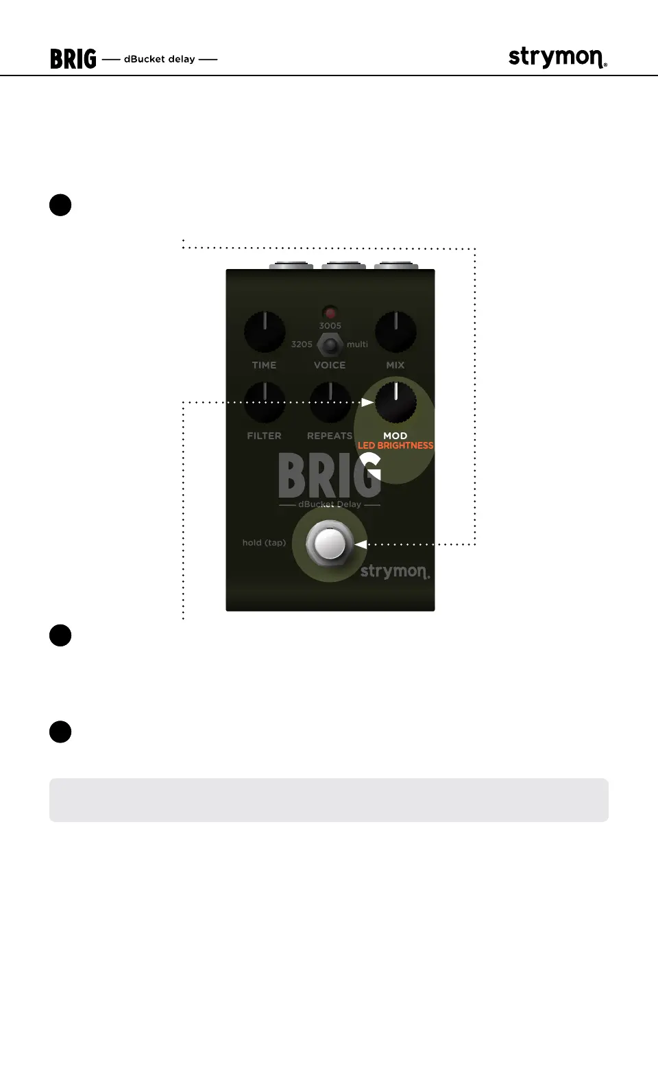 up Brig� Once the LED flashes RED, release the footswitch�