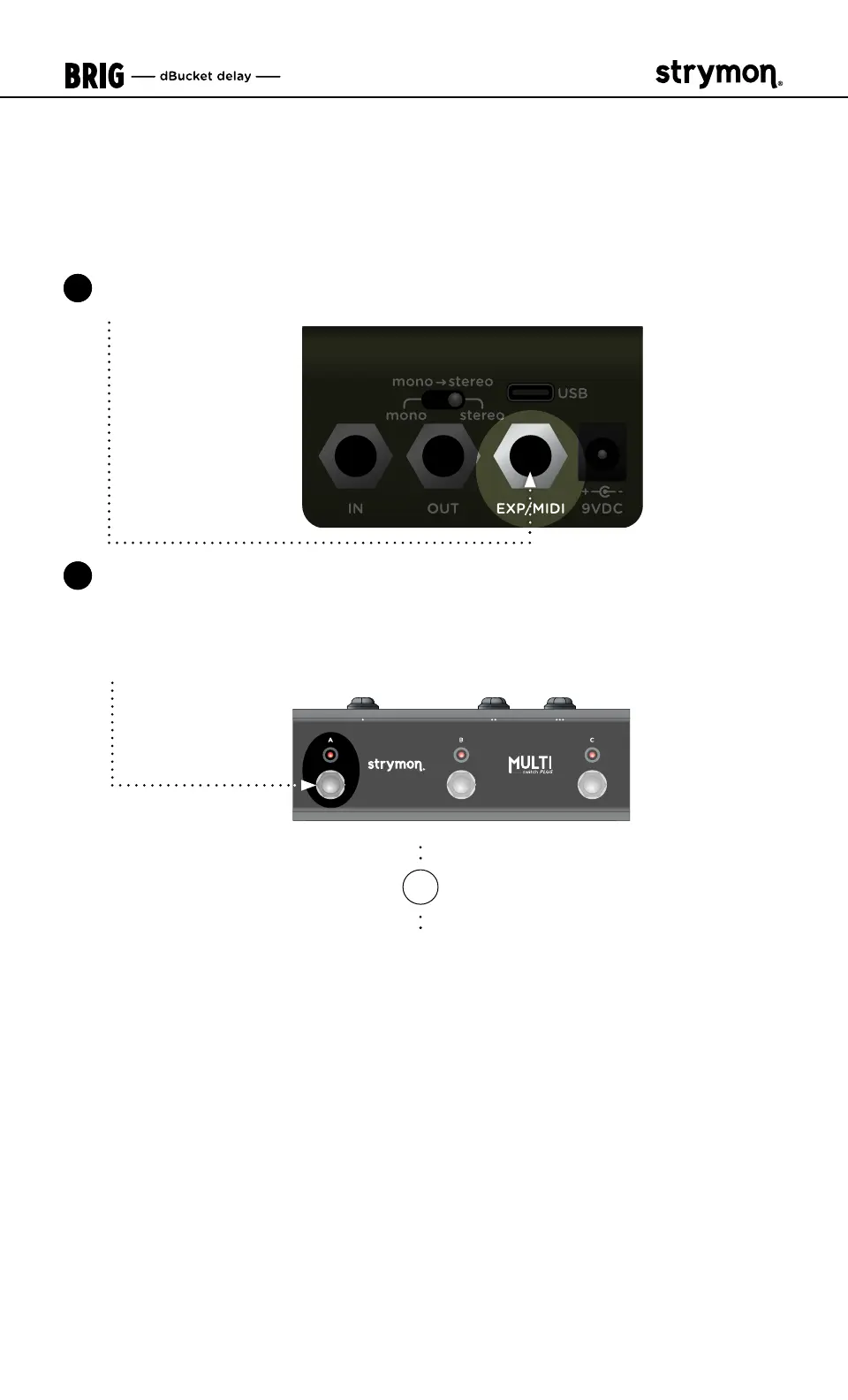 1 Connect a TRS cable to Brig’s EXP/MIDI jack�