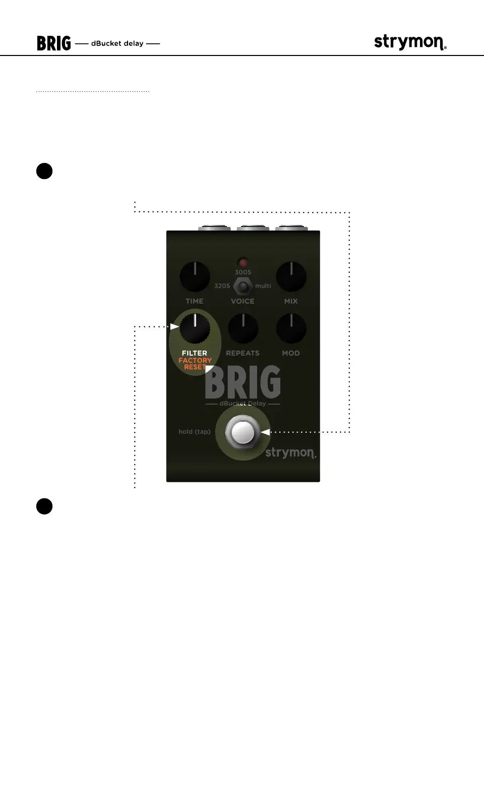 powering up Brig� Once the LED flashes RED, release the footswitch�